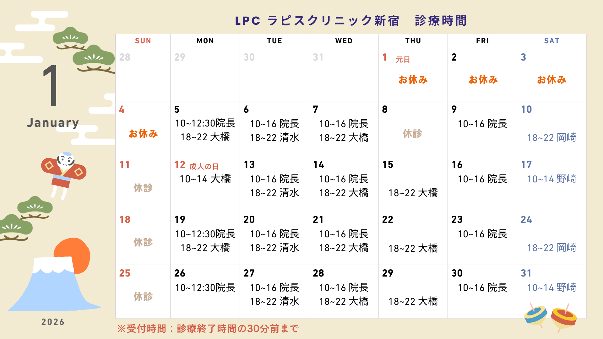 • 🎍2026年1月の診療時間のお知らせ🎍 2025年12月17日